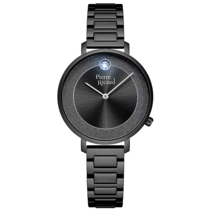 Pierre Ricaud P23018.B104Q to zegarek do damski w czarnej kolorystyce z przykuwającą uwagę, ciekawie fakturowaną tarczą i kryształkiem na godzinie 12-ej. Będzie idealnym wyborem dla każdej kobiety ceniącej sobie wysoką jakość i modny design.