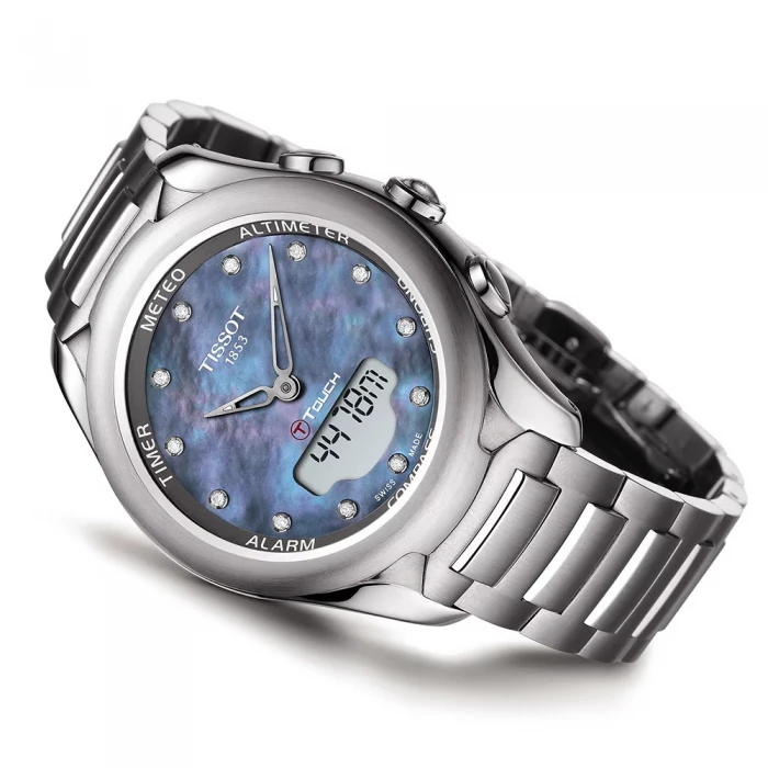 Szwajcarski zegarek Tissot T075.220.11.106.01 T-Touch Lady Solar Diamonds wyposażony jest w precyzyjny mechanizm kwarcowy. Jego wodoszczelność wynosi 10 ATM, co pozwala na swobodne pływanie oraz nurkowanie powierzchniowe.