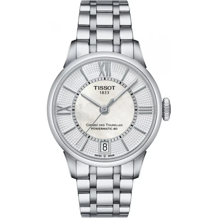 T099.207.11.118.00 z kolekcji Chemin de Tourelles szwajcarskiego producenta Tissot to ekskluzywny zegarek damski z automatycznym mechanizmem Powermatic 80.111. Osadzony na 23 kamieniach może poszczycić się aż 80-godzinną rezerwą chodu co oznacza, że nie noszony nawet przez 3 dni wciąż będzie wskazywał dokładną godzinę. Tym przewyższa konkurencyjne marki, które zazwyczaj zapewniają do 1,5 dnia zapasu mocy. Skierowany jest dla pań ceniących sobie najwyższą jakość wykonania i elegancką, klasyczną stylistykę.