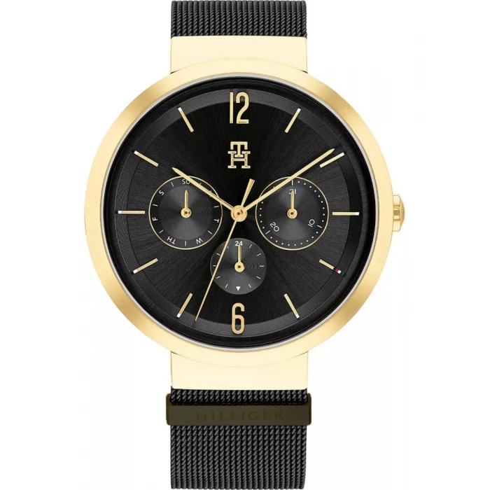 Zegarek damski TOMMY HILFIGER 1782540 to bardzo kobiecy model wyposażony w niezawodny mechanizm kwarcowy z funkcją multi-datownika oraz czasu dobowego w postaci małej, 24-godzinnej tarczy. Koperta czasomierza oraz bransoleta wykonane zostały ze stali szlachetnej 316L odpornej na korozję i uszkodzenia mechaniczne w pięknym, złotym kolorze.