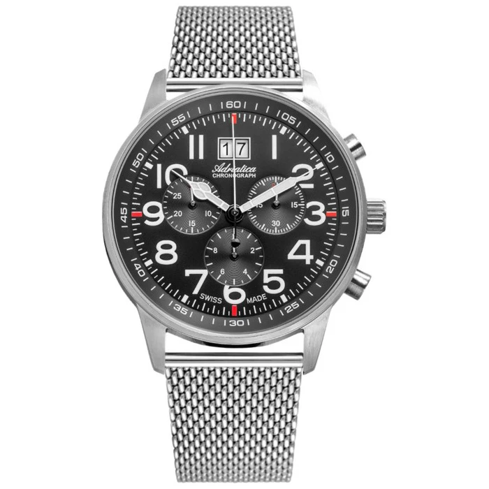 Zegarek ADRIATICA A1076.5124CHG należy do grona jednych z najchętniej wybieranych czasomierzy tego roku. Produkt ten wykonano z odpornej na rdzewienie stali szlachetnej, która cechuje się długoletnią trwałością. Czasomierz zawieszono na wygodnej bransolecie, która łączy się z kopertą o okrągłym kształcie. Czarny cyferblat wyposażony jest w trzy subtarcze, datownik oraz chronograf. Cała tarcza z indeksami w formie cyfr arabskich przykryta jest przez mineralne szkiełko z antyrefleksem. Zegarek ADRIATICA A1076.5124CHG odznacza się wodoszczelnością klasy 5 ATM, dzięki czemu ma on odporność na lekkie zachlapania. Za niezawodne działanie czasomierza odpowiada mechanizm Ronda 5040, który wyprodukowano w Szwajcarii.