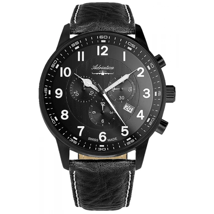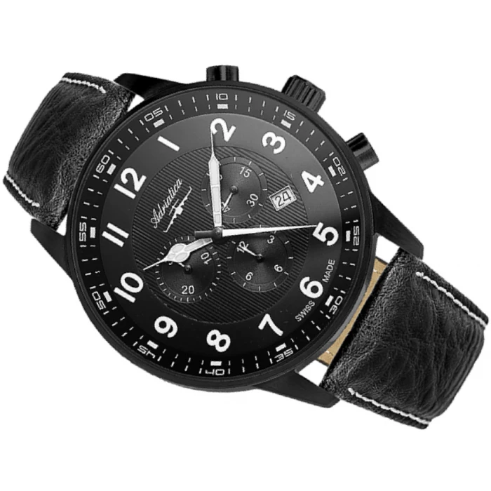 Zegarek ADRIATICA A1076.B224CHXL to multifunkcyjny model, który sprawdzi się u każdego mężczyzny poszukującego wysokiej jakości dodatku na każdy dzień. Klasyczna tarcza z białymi, wyraźnymi cyframi posiada 3 dodatkowe subtarcze m.in. z sekundnikiem oraz datownikiem dni miesiąca. Czarny pasek wykonany został ze skóry naturalnej charakteryzującej się idealnym dopasowaniem do nadgarstka, co daje niezwykłą wygodę noszenia. Czasomierz ten napędzany jest szwajcarskim mechanizmem kwarcowym Ronda 5030 Swiss Made, który jest przede wszystkim solidnym i precyzyjnym systemem. Cyferblat zegarka ADRIATICA A1076.B224CHXL zabezpieczony został szkłem mineralnym z antyrefleksem, dzięki któremu bez problemu odczytamy godzinę w najbardziej słoneczne dni. Klasa wodoszczelności równa się 5 ATM, co pozwala na drobne zachlapania np. krople wody, deszcz lub pot.