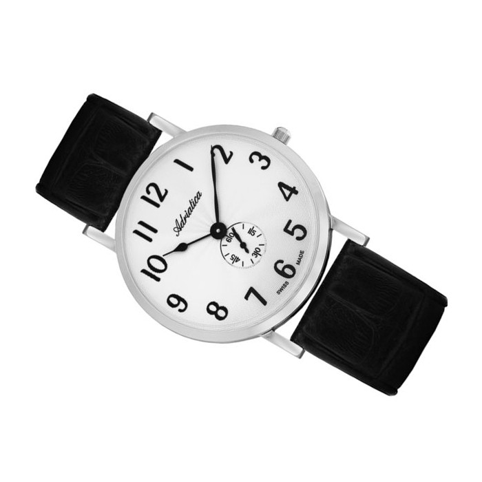 Zegarek ADRIATICA A1113.5223Q to ceniony przez mężczyzn idealny dodatek na co dzień. Jego klasyczne wykończenie sprawia, że będzie on pasował do każdej męskiej stylizacji. Ma on bardzo czytelną białą tarczę z czarnymi indeksami i wskazówkami oraz dodatkową subtarczą. Cyferblat w wydaniu analogowym przykryty jest przez wysokiej jakości szkiełko utwardzane, które stosuje się w zegarkach tej klasy. Czasomierz od szwajcarskiej marki Adriatica zawieszony jest na skórzanym pasku utrzymanym w czarnym kolorze. Wodoszczelność tego urządzenia (3 ATM), pozwala na lekkie zachlapania i chwilowy kontakt z kroplami wody, ale nie należy z nim pływać. Zegarek ADRIATICA A1113.5223Q napędzany jest przez niezawodny mechanizm Eta 902. Jego waga wynosi 49 g.