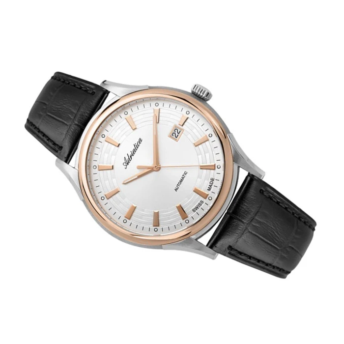 Zegarek ADRIATICA A2804.R213A to oryginalna propozycja dla mężczyzn, wyróżniających się dzięki stylowym dodatkom. Ma on jasną tarczę z indeksami w kolorze różowego złota. Po jej prawej stronie znajduje się datownik, a przy godzinie 12 zlokalizowano logo rozpoznawalnego producenta. Całość przykryto wysokiej jakości szkiełkiem szafirowym, które wyróżnia się dzięki doskonałym właściwościom technicznym, do których można zaliczyć odporność na zarysowania i stłuczenia. Zegarek ADRIATICA A2804.R213A ma okrągłą kopertę ze stali szlachetnej, do której przymocowano czarny pasek z naturalnej skóry. Za działanie czasomierza odpowiada bezawaryjny mechanizm automatyczny Eta 2824 z rezerwą chodu wynoszącą ok. 38 godzin. Klasa wodoszczelności tego zegarka plasuje się na poziomie 5 ATM, co oznacza, że jest on odporny na lekkie zachlapania oraz kontakt z kroplami wody.