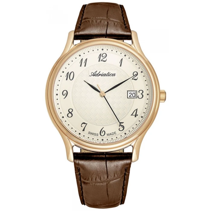 Zegarek ADRIATICA A8000.1223Q to propozycja dla mężczyzn, poszukujących tradycyjnego modelu o doskonałych parametrach. Czasomierz ten będzie świetnym wyborem do noszenia na co dzień. Biała tarcza wzbogacona jest o indeksy w formie cyfr arabskich. Po jej prawej stronie, przy godzinie 3 zlokalizowano datownik dni miesiąca. Całość przykryto szafirowym szkiełkiem, które odznacza się świetną przejrzystością oraz odpornością na zarysowania. Okrągłą kopertę wykonano z bardzo trwałego materiału, czyli stali szlachetnej. Pasek z naturalnej skóry w brązowym kolorze wygodnie oplata męski nadgarstek. Zegarek ADRIATICA A8000.1223Q cechuje się wodoszczelnością klasy 5 ATM, czyli 50 metrów. Jest on więc odporny na lekkie zachlapania i sporadyczny kontakt z kroplami wody. Urządzenie działa dzięki kwarcowemu mechanizmowi Ronda 515.
