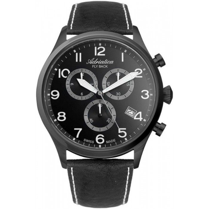 Zegarek Adriatica Fly Back A8267.B224CH napędzany jest przez kwarcowy mechanizm Eta G10.212 Swiss Made. Czasomierz wykonany jest ze stali szlachetnej, a czarna tarcza pokryta jest odpornym na zarysowania, szafirowym szkiełkiem. Wodoszczelność na poziomie 5 ATM (50m) sprawia, że z czasomierzem można wchodzić do wody, ale nie zaleca się z nim pływać.