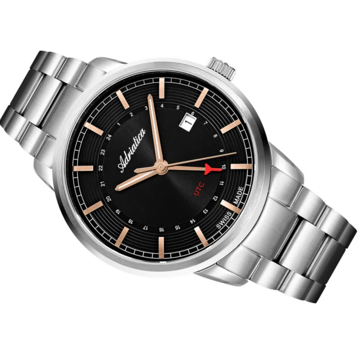Zegarek ADRIATICA A8307.51R6Q to ciekawa propozycja dla stylowych mężczyzn lubiących wyróżniać się z tłumu. Klasyczny design połączony z modnym wykończeniem sprawia, że czasomierz stanie się ulubionym dodatkiem do codziennych, jak i tych bardziej eleganckich stylizacji. Na czarnej tarczy zlokalizowano datownik dni miesiąca, dzięki któremu można w każdej chwili sprawdzić aktualną datę bez konieczności sięgania po telefon lub kalendarz. Wyróżniające się wskazówki i indeksy w kolorze różowego złota nadają odpowiedniego charakteru. Do zabezpieczenia cyferblatu użyto odpornego na zarysowania i stłuczenia szkiełka szafirowego. Bransoleta wraz z kopertą zostały wykonane z trwałej, nierdzewnej i antyalergicznej stali szlachetnej. Urządzenie napędza precyzyjny mechanizm kwarcowy Ronda 515 Swiss Made, a wodoszczelność na poziomie 5 ATM pozwala na delikatne zachlapania np. krople wody, deszcz lub pot.