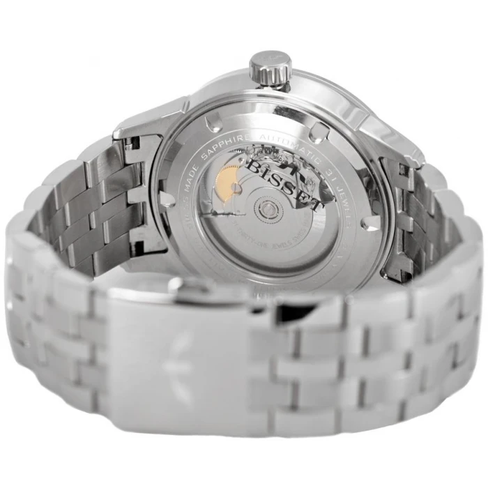 Model Bisset BSMF59 został wyposażony w praktyczny datownik wskazujący aktualny dzień miesiąca oraz mniejszą sub-tarczę nad godziną 6-tą, na której czas odmierza sekundnik. Dużym atutem jest wodoszczelność na poziomie 10 atm, która pozwoli na swobodne pływanie z zegarkiem na ręce. Ponadto posiada przeszklony dekielek, który daje możliwość oglądania pracy mechanizmu.