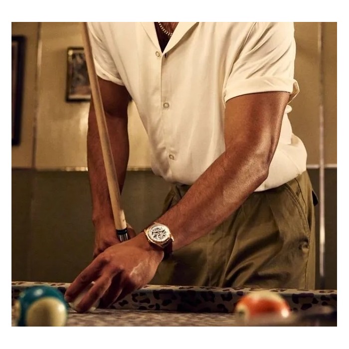 - -TARCZA: Typ skeleton z widocznym mechanizmem i indeksami w kolorze różowego złota;