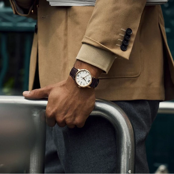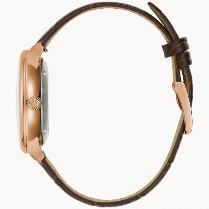 Praktyczny datownik przy godzinie 3-ej wskaże aktualny dzień miesiąca. Atutem jest przeszklony dekielek z tyłu zegarka dzięki czemu mamy możliwość podglądu pracy mechanizmu. Całość zamyka pasek wykonany z wysokogatunkowej skóry naturalnej z wygodnym zapięciem na sprzączkę. Wodoszczelność na poziomie 3 ATM (30 m) to odporność na zachlapania, np. podczas mycia rąk.