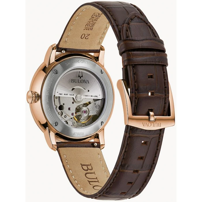 Klasyczny męski automat Bulova 97B225 z kolekcji Hudson amerykańskiego producenta. Posiada mechanizm automatyczny Miyota 8215 osadzony na 21 kamieniach z 40 godzinną rezerwą chodu. Pozyskuje energię z ruchu ręki dzięki pracy automatycznego naciągu więc nie wymaga baterii.