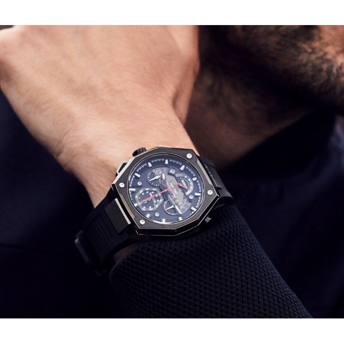 Uwagę zwraca solidna koperta o niestandardowym kształcie, wykonana ze stali szlachetnej 316l która jest odporna na czynniki zewnętrzne. Ciekawie zaprojektowaną tarczę pokrywa szkiełko szafirowe z powłoka antyrefleksyjną. Zapewnia ono optyczną przejrzystość (najlepszą wśród stosowanych szkiełek w zegarkach), jest bardzo trudne do zarysowania a także odporne na różnice temperatur i działanie rozpuszczalników. Gumowy pasek w czarnym kolorze jest trwały, ma solidna strukturę a przy tym jest wygodny i komfortowy w użytkowaniu.