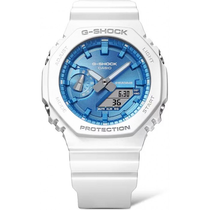 GA-2100WS-7AER to trwały, solidny zegarek, wzmocniony włóknem węglowym, Odporny na wstrząsy, uderzenia, wibracje, pyły czy wysokie ciśnienie. Wykonany z hipoalergicznego tworzywa, które jest niezwykle trwałe a jednocześnie lekkie i komfortowe w użytkowaniu. Wodoszczelny na poziomie 20 atm - można w nim pływać i nurkować. Modny ale i bardzo solidny zegarek dla osób lubiących podkreślić swój indywidualny styl.