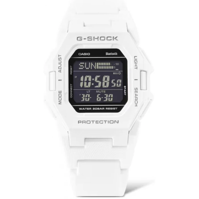 Wielofunkcyjny zegarek Casio GD-B500-7ER - smukły i kompaktowy w prostokątnej kopercie - dla wszystkich, którzy prowadzą aktywny tryb życia. System wstrząsoodporny G-Shock zabezpiecza go przeciwko wstrząsom i uderzeniom. To co wyróżnia zegarek na tle innych to funkcje smartwatcha i łączność z telefonem poprzez Bluetooth. Wyposażony w czytelny ekran ciekłokrystaliczny, który pozwoli na stawianie wyzwań nawet w najbardziej szalonych warunkach.