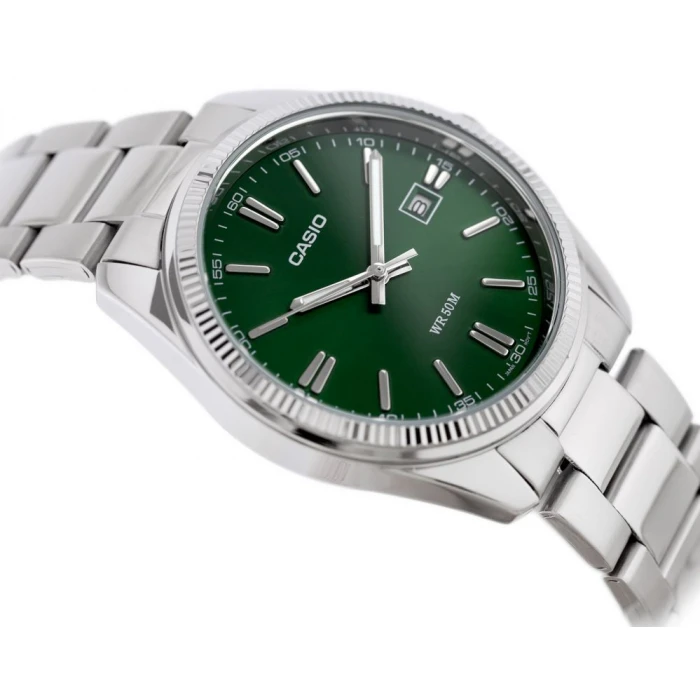 Elegancki zegarek CASIO MTP-1302PD-3AV dla Panów, niezawodny zegarek z klasycznej linii CASIO. Cechuje go wytrzymała i solidna konstrukcja. Metalowa koperta i stalowa bransoleta charakteryzują się dobrą jakością wykonania. Wskazówki zostały powleczone specjalną warstwą fosforyzującą świecącą w po zmroku. Praktyczny i niezawodny mechanizm kwarcowy zasilany baterią srebrową został dodatkowo wyposażony w datownik wskazujący aktualny dzień miesiąca. Wodoszczelność na poziomie 5 atm to odporność na zachlapania i krótkotrwałe zanurzenie w wodzie. Casualowy model dla Panów na każdą okazję.