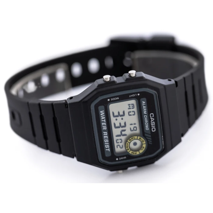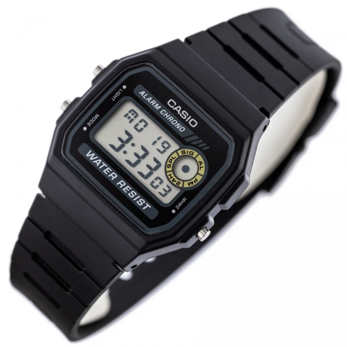 Zegarek męski Casio F-94WA-8D to klasyczny model, który przywołuje wspomnienia z lat 80, jednocześnie oferując nowoczesną niezawodność i funkcjonalność. Jego prostota i solidność sprawiają, że idealnie wpisuje się w codzienny styl, a jednocześnie zyskuje status ponadczasowego dodatku. Wyrazista, czarna tarcza z wyraźnymi cyframi oraz wyświetlaczem LCD to nie tylko elegancka forma, ale także pełna praktyczność. Z łatwością odczytasz godzinę, datę czy ustawiony alarm, a podświetlenie umożliwia wygodny odczyt w ciemności.