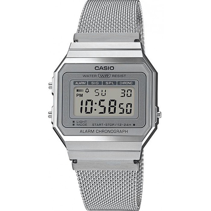Zegarek CASIO A700W-7A to jeden z najpopularniejszych modeli w stylu vintage. Zanana wszystkim "kostka" i design, który tradycyjnie łączy nowoczesność ze stylem retro. Japoński model ze sprawdzonym mechanizmem kwarcowym i wyświetlaczem digital, w prostokątnej kopercie wykonanej z solidnego tworzywa. Dodatkowymi atutami są koperta - tylko 6mm ! grubości oraz bransoleta typu mesh, która idealnie dopasuje się do nadgarstka.