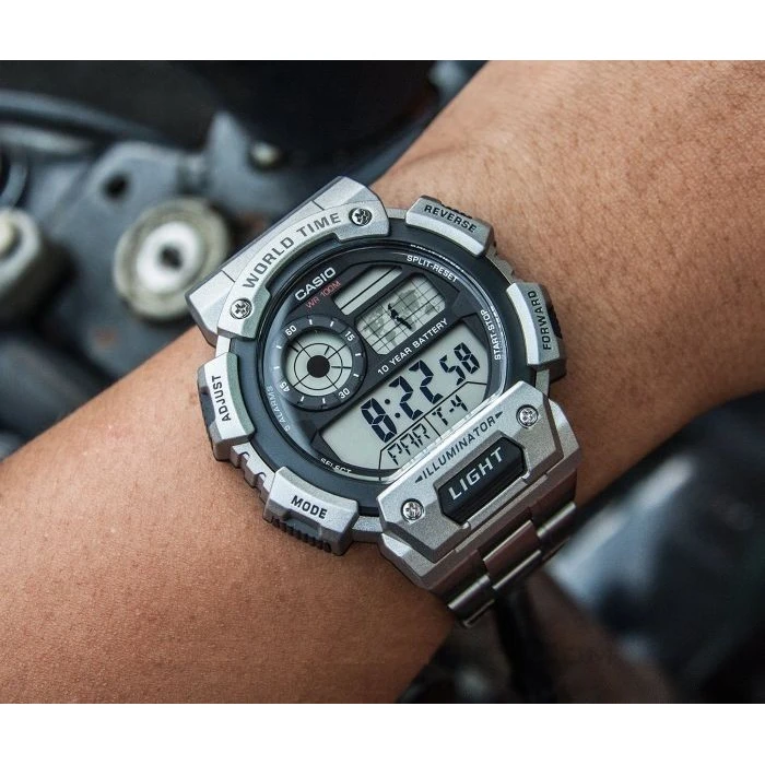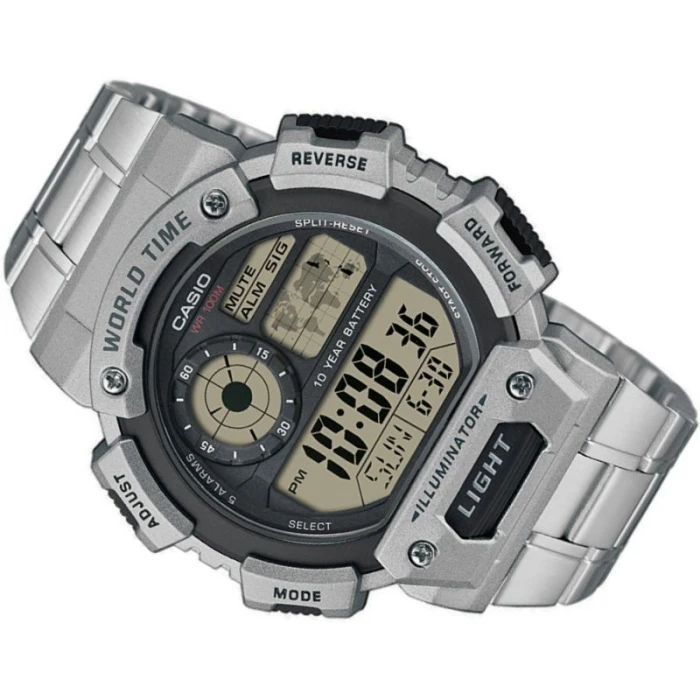 Zegarek CASIO AE-1400WH ze sportowej kolekcji japońskiej marki CASIO charakteryzuje się dużą wytrzymałością i wodoszczelnością do 100m. Połączenie sportowego charakteru z niebanalnym wyglądem i prostotą. Niezawodność oraz oryginalny i nowoczesny design powoduje iż jest to jeden z ciekawszych modeli wśród sportowej kolekcji CASIO.