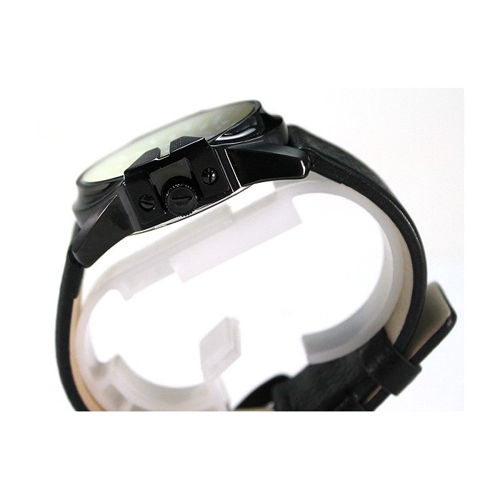 - Wyrazisty, buntowniczy design: Koperta ze stali nierdzewnej (45 x 51 mm, grubość 12 mm) pokryta czarną powłoką PVD przyciąga wzrok swoją masywną formą. Iridescencyjna tarcza w odcieniach pomarańczowo-niebieskich mieni się w zależności od światła, dodając zegarkowi unikalnego stylu. Czarny pasek z naturalnej skóry cielęcej (szerokość 26 mm) z zapięciem na sprzączkę zapewnia wygodę i elegancję.