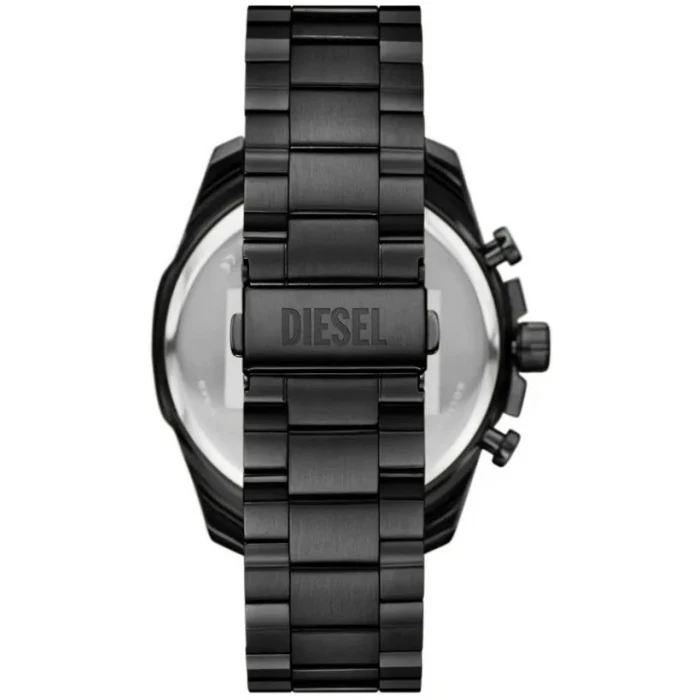 Diesel DZ4689 zachwyca masywnym, futurystycznym wyglądem. Błękitna tarcza z efektem sunray i luminescencyjnymi wskazówkami zapewnia doskonałą czytelność, a polerowana koperta ze stali nierdzewnej w czarnym wykończeniu współgra z trzyrzędową bransoletą ze stali nierdzewnej z zapięciem zatrzaskowym z przyciskami. Wielobarwne szkiełko mineralne dzięki swoim właściwościom zmienia kolory w zależności od kąta padania światła. Całość wygląda bardzo efektownie i tak jak na markę Diesel przystało niebagatelny design odgrywa tutaj kluczową rolę. Waga i smukła, ale imponująca konstrukcja (wymiary 50 x 10mm) sprawiają, że zegarek wygodnie leży na nadgarstku, pasując do casualowych i streetwear stylizacji. Uwagę przykuwają subtarcze chronografu na godzinach 6, 9 i 12, dodające dynamicznego charakteru.