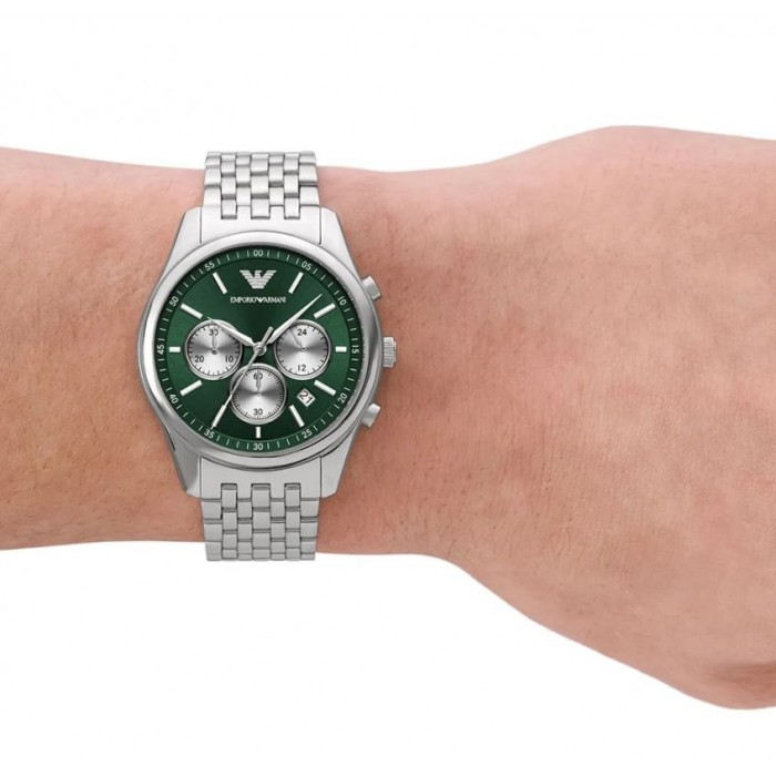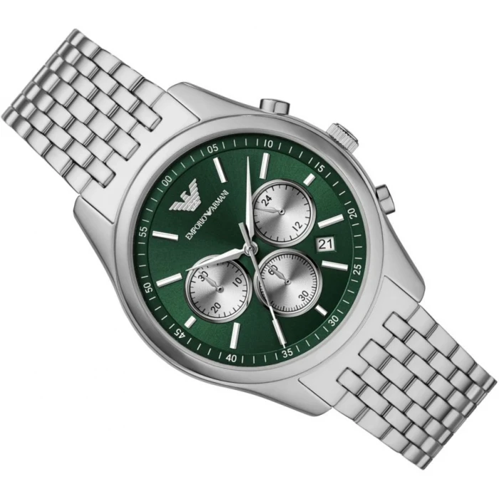 Zegarek EMPORIO ARMANI czołowego projektanta w świecie mody - wyjątkowy model AR11581 z kolekcji Antonio w eleganckiej, srebrno-zielonej kolorystyce dla mężczyzn wymagających i pewnych siebie. Włoski producent zadbał o wszystkie szczegóły i niebanalną stylistykę.