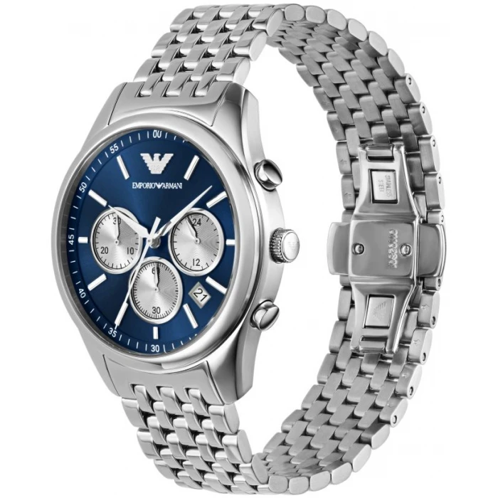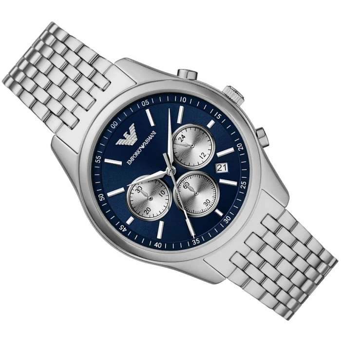 Zegarek EMPORIO ARMANI czołowego projektanta w świecie mody - wyjątkowy model AR11582 z kolekcji Antonio w eleganckiej, srebrno-niebieskiej kolorystyce dla mężczyzn wymagających i pewnych siebie. Włoski producent zadbał o wszystkie szczegóły i niebanalną stylistykę.