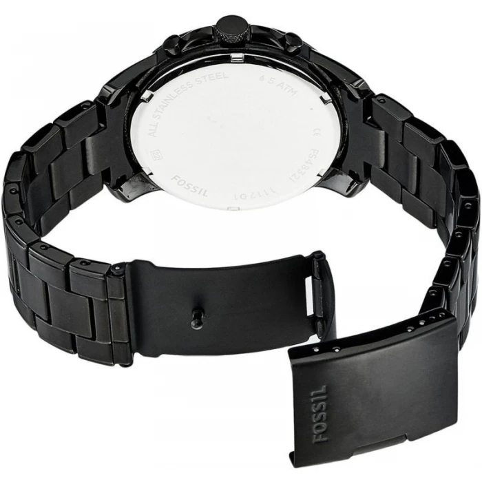 Ekskluzywny męski zegarek znanej i cenionej amerykańskiej marki Fossil. Prezentowany model FS4832 to klasyczny zegarek męski. Koperta wykonana jest w całości ze stali szlachetnej. Całość zegarka cechuje przede wszystkim niezwykle nowoczesne wzornictwo i modna kolorystyka. Do funkcji zegarka zaliczamy m.in.: stoper w formie chronografu, tarcze 24-godzinną jak również wodoszczelność na poziomie 5 ATM. CECHY ZEGARKA: -MECHANIZM; kwarcowy - zasilany baterią; -KOPERTA: stal szlachetna; -BRANSOLETA: stal szlachetna; -MAKSYMALNY OBWÓD BRANSOLETY: 20cm; -TARCZA: czarna; -WODOSZCZELNOŚĆ: 5 ATM (50m) - odporny na zachlapania; -WSKAZÓWKI FOSFORYZUJĄCE: wskazówki w zegarku zostały pokryte warstwą fosforyzującą, która po naświetleniu w dzień - świeci w ciemnościach; -CHRONOGRAF: stoper w formie chronografu mierzący czas do 30min. z dokładnością do 1/1s; -TRYB 24-GODZINNY: mała tarcza wskazuje tryb 24-godzinny; -ŻYWOTNOŚĆ BATERII; 2 lata; -OPAKOWANIE: Oryginalne metalowe pudełko z logiem marki; -INSTRUKCJA W JĘZYKU POLSKIM; -OKRES GWARANCJI; 2 lata.