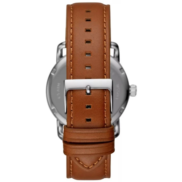 Fossil FS5661 wyposażony został w mechanizm kwarcowy zasilany baterią. Koperta wykonana została ze stali szlachetnej 316L odpornej na ścieranie i korozję w srebrnym kolorze. Niebieską tarczę z indeksami częściowo w formie cyfr rzymskich pokryto przejrzystym szkiełkiem mineralnym. Wodoszczelność na poziomie 5 atm o odporność na zachlapania i krótkotrwałe zanurzenie w wodzie. Całość zamyka pasek wykonany z wysokogatunkowej skóry naturalnej z wygodnym zapięciem na sprzączkę.