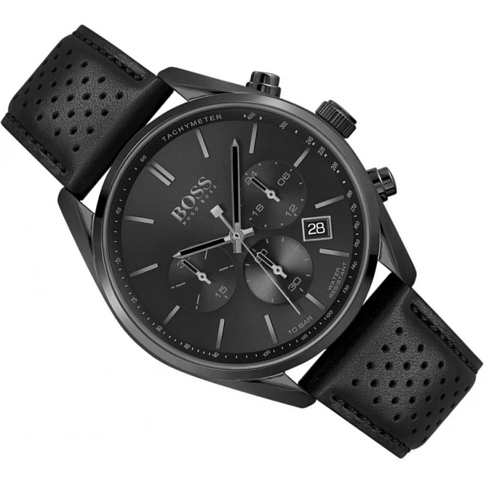 Elegancki zegarek męski Hugo Boss 1513880 posiada mechanizm kwarcowy zasilany baterią. Czarną tarczę pokrywa szkiełko mineralne. Do funkcji zegarka możemy zaliczyć stoper w formie chronografu, mierzący czas do 30 minut, czas dobowy oraz praktyczny datownik wskazujący aktualny dzień miesiąca.