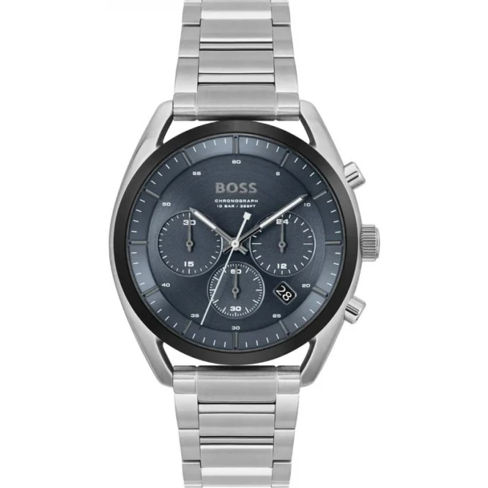 Hugo Boss 1514093 z kolekcji Top to elegancki oraz funkcjonalny zegarek męski. Posiada precyzyjny mechanizm kwarcowy zasilany baterią. Ciemnoniebieską, wyróżniającą się tarczę pokrywa szkiełko mineralne. Do funkcji zegarka możemy zaliczyć stoper w formie chronografu, mierzący czas do 30 minut, czas dobowy określa porę dnia - godziny przed i popołudniowe oraz praktyczny datownik wskazujący aktualny dzień miesiąca.