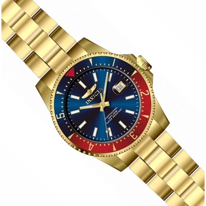 Invicta 36792 z kolekcji Pro Diver to zegarek dla mężczyzn, którzy pragną połączyć elegancję z funkcjonalnością nurkową. Ten automatyczny model wyróżnia się złotą kopertą i bransoletą ze stali nierdzewnej, które kontrastują z granatową tarczą, tworząc luksusowy i klasyczny wygląd. Wyposażony w japoński mechanizm NH35A i wodoszczelność do 200 metrów, jest idealnym towarzyszem zarówno podczas podwodnych przygód, jak i w codziennych, wyrafinowanych stylizacjach. To zegarek, który łączy jakość rzemiosła z odważnym stylem Invicta.