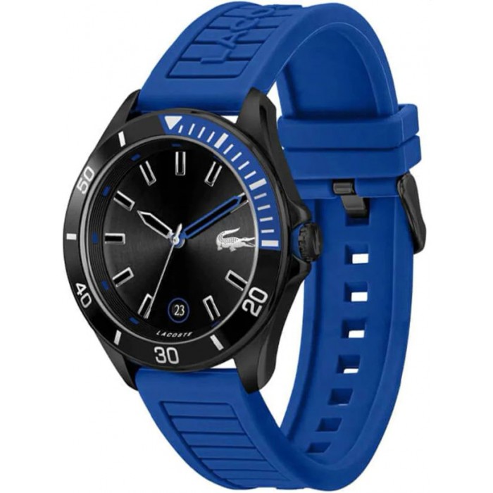 Nowy zegarek męski 2011262 z kolekcji Tiebraker francuskiego producenta Lacoste. Modny, a zarazem funkcjonalny czasomierz w sportowym stylu, nowoczesnym, przyciągającym wzrok designie i czarno-niebieskiej kolorystyce.