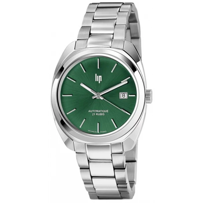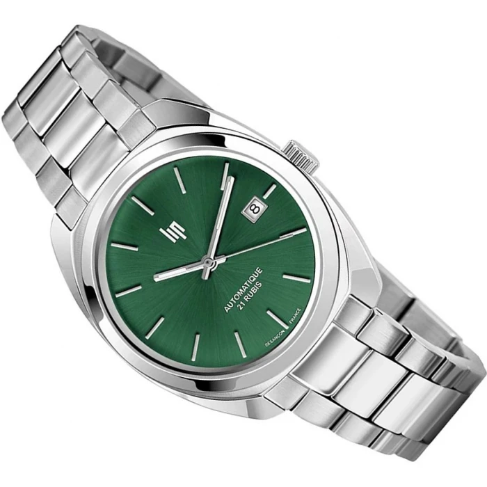 Lip 671369 to nowa wersja flagowego modelu francuskiego producenta, którego pierwsza odsłona miała miejsce w latach 60 XX-wieku i została podarowana generałowi de Gaulle'owi. Elegancki, stalowy męski zegarek z zieloną tarczą dekorowaną szlifem słonecznym.
