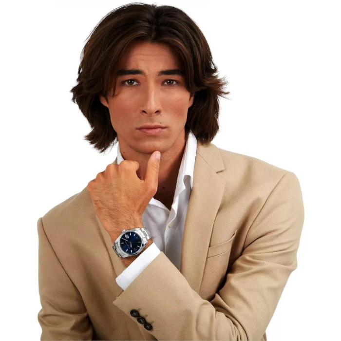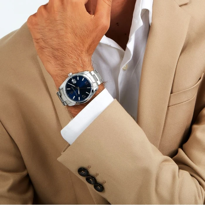 Srebrne wskazówki oraz indeksy godzinowe zostały pokryte specjalną powłoką, dzięki której odczyt czasu w ciemności nie stanowi żadnego problemu. Całość zawieszona jest na srebrnej bransolecie, która idealnie dopasowuje się do nadgarstka. Dodatkowym atutem jest datownik wskazujący dzień miesiąca, umieszczony na godzinie 3:00.