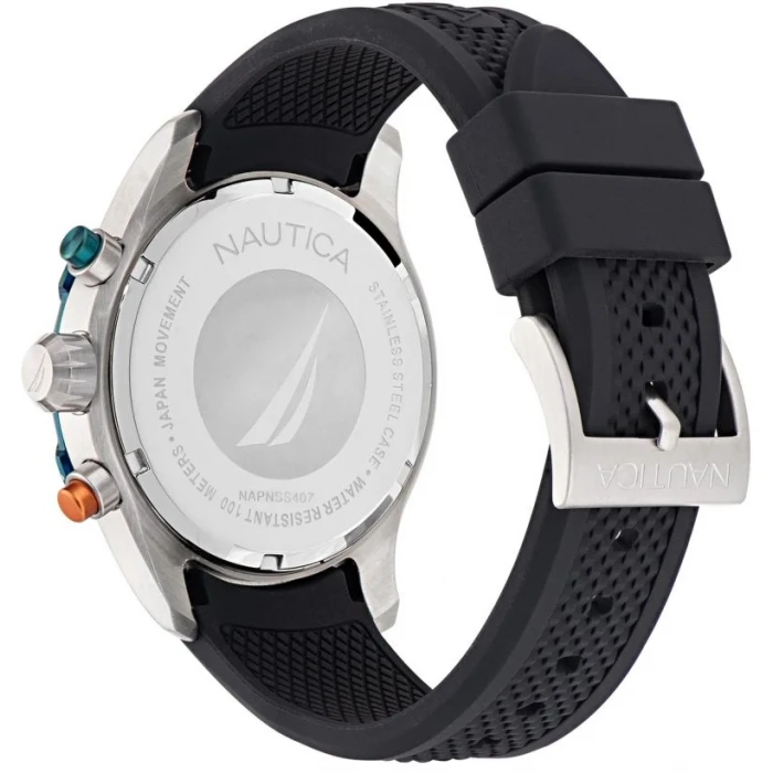 Klasa wodoszczelności NAUTICA NAPNSS407 wynosi 10 ATM(WR100m). Wodoszczelność taka oznacza, że zegarek może być swobodnie zanurzany w wodzie podczas kąpieli czy pływania. Zakręcany dekiel gwarantuje dodatkową ochronę mechanizmu przed zalaniem.