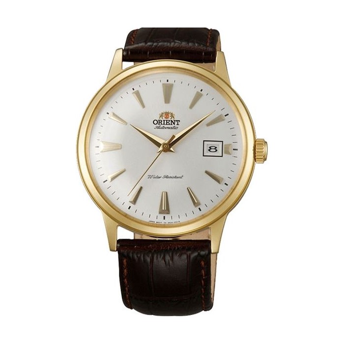 Model Orient FAC00003W0 pochodzi z kultowej już kolekcji Bambino, którą charakteryzuje różnorodność kolorystyczna tarcz, oraz stylizacja czasomierzy na styl Vintage. Odświeżona seria zegarków zaopatrzona jest w nowy, automatyczny mechanizm od Orient Watch F6724. Automatyczny klasyk z ilością 22 kamieni i możliwością ręcznego dokręcania. Białą tarczę z wyróżniającymi się złotymi wskazówkami chroni szkiełko mineralne odporne na stłuczenia. Praktyczny datownik przy godzinie 3-ej wskazuje aktualny dzień miesiąca. Całość utrzymana jest na skórzanym, brązowym pasku wykonanym z wysokogatunkowej skóry naturalnej.