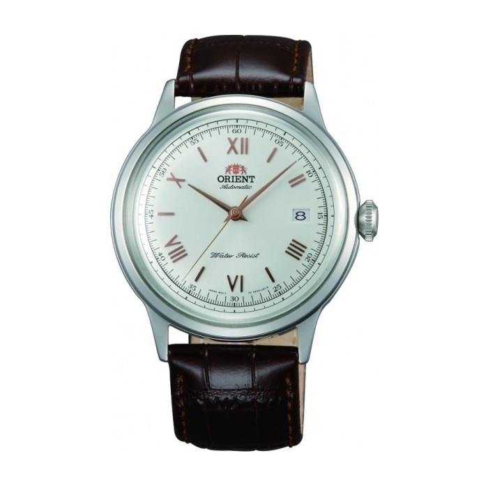 Zegarek męski ORIENT FAC00008W0 Classic Automatic Bambino napędzany jest za pomocą mechanizmu automatycznego z możliwością ręcznego dokręcania. Biała tarcza pokryta jest, odpornym na stłuczenia, szkiełkiem mineralnym. Wodoszczelność na poziomie 3 ATM (30m) sprawia, że czasomierz jest odporny na niewielkie zachlapania - nie wolno wchodzić z nim do wody! Dodatkowo przy godzinie 3 zlokalizowany jest datownik pokazujący aktualny dzień miesiąca. Stalowa koperta utrzymana jest na eleganckim, skórzanym pasku.