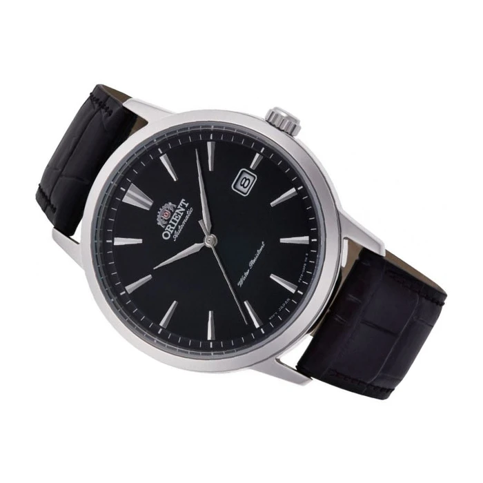 Zegarek ORIENT RA-AC0F05B10B to męski model o klasycznym wyglądzie, który z pewnością doda modnego looku do stylizacji na każdą okoliczność. Będzie świetnym wyborem dla panów, którzy nie uznają kompromisów jeśli chodzi o dobrej jakości dodatki. Cyferblat w czarnym kolorze z indeksami liniowymi w odcieniu srebra jest dodatkowo wyposażony w datownik. Całość zawieszona jest na czarnym pasku ze skóry z przeszyciami. W tym modelu do zabezpieczenia tarczy użyto szkiełka mineralnego o niezwykle dopracowanych parametrach. Zegarek ORIENT RA-AC0F05B10B napędzany jest za pomocą mechanizmu automatycznego. Jego wodoszczelność to 5 ATM (50M), dzięki czemu jest on odporny na drobne zachlapania, powstałe np. przy myciu rąk.