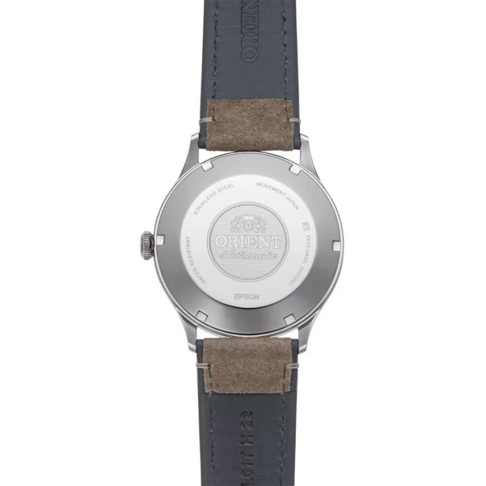 Koperta została wykonana ze stali szlachetnej 316L, która jest hipoalergiczna, trwała i odporna na działanie czynników zewnętrznych takich woda czy pot. Klasyczną tarczę z datownikiem pokryto przejrzystym szkiełkiem mineralnym. Wodoszczelność na poziomie 3 ATM, czyli 30 metrów pozwala na delikatne zachlapania powstałe podczas mycia lub pielęgnacji dłoni. Całość zamyka skórzany pasek w brązowym kolorze ze sprzączką z logo producenta.