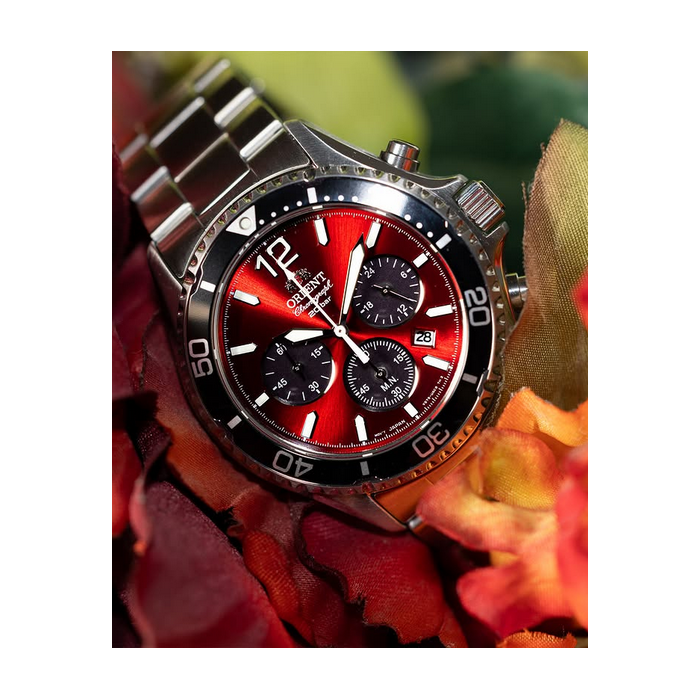 Zegarek męski ORIENT RA-TX0207R10B został wyposażony w mechanizm kwarcowy Epson VS752 zasilany przez panel solarny. Koperta została wykonana z wysokiej jakości stali szlachetnej. Tarcza przykryta jest odpornym na zarysowania szkiełkiem szafirowym - najtwardszym szkiełkiem stosowanym w zegarkach. Wysoka klasa wodoszczelności na poziomie aż 20 ATM (200m) sprawia, że czasomierz jest odporny na wodę zarówno podczas pływania, jak i nurkowania z akwalungiem.