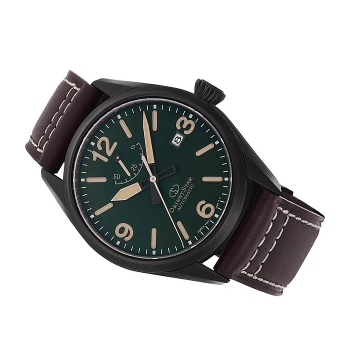 Zegarek ORIENT STAR Sports Automatic RE-AU0201E00B przypadnie do gustu nawet najbardziej wymagającym fanom urządzeń wyposażonych w automatyczne mechanizmy. Czasomierz ten odznacza się niebanalnym wyglądem, który doda charakteru zarówno casualowej, jak i odświętnej stylizacji oraz parametrami technicznymi najwyższej jakości. ORIENT STAR Sports Automatic RE-AU0201E00B działa w oparciu o japoński mechanizm automatyczny Orient F6N43, który napędzamy jest ruchem nadgarstka, a jego rezerwa chodu wynosi 50 godzin nieprzerwanej pracy. Ciemny korpus wykonany ze stali szlachetnej podtrzymywany jest przez pasek wykonany z wysokiej jakości skóry naturalnej, która dodatkowo została wzbogacona o jasne przeszycia. Tarcza tego czasomierza została pokryta kolorem zielonym, a zabezpiecza ją odporne na zarysowania i uszkodzenia szkiełko szafirowe. Ponadto urządzenie zostało wyposażone w datownik dni miesiąca oraz powłokę, która umożliwia widzenie w ciemności. W klasyfikacji wodoszczelności zegarek mieści się na poziomie 10 ATM, czyli 100 metrów, co sprawia, że można w nim swobodnie pływać oraz nurkować bez akwalungu.