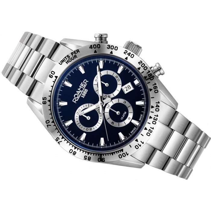 Zegarek męski Roamer 850837 41 45 20 z najnowszej kolekcji Monza 100 w srebrno-niebieskiej kolorystyce dla mężczyzn wymagających i pewnych siebie.