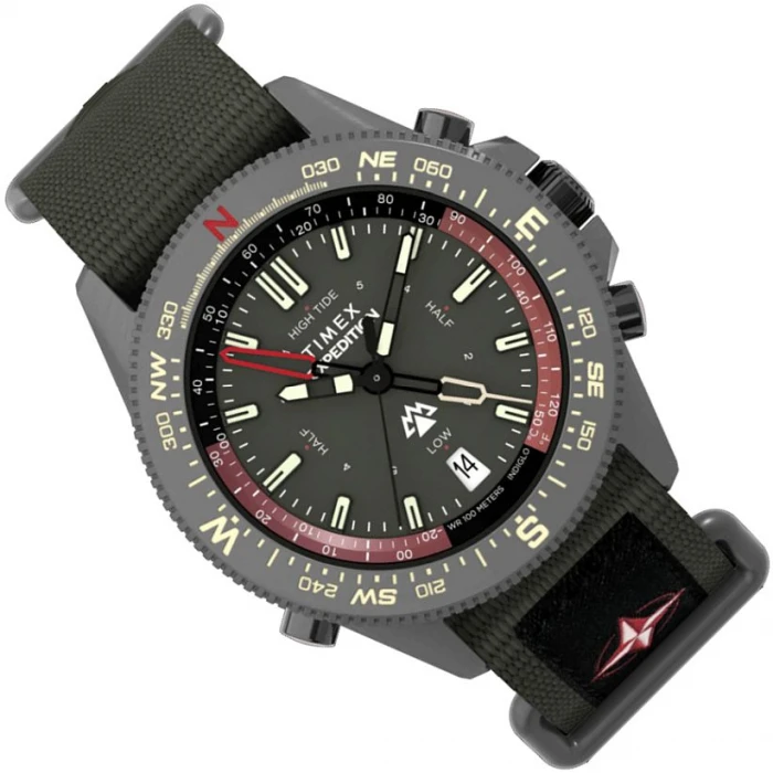 Oprócz nieprzeciętnego wyglądu i wysokiej jakości zastosowanych materiałów zegarek Timex TW2W91100 Expedition North oferuje funkcje kompasu, który pozwali na określenie kierunku i obranie właściwego celu, termometru oraz wskaźnik przypływów i odpływów morskich. Praktyczny datownik przy godzinie 6-ej wskaże aktualny dzień miesiąca. Dodatkowym atutem jest wodoszczelność na poziomie 100m pozwalająca na swobodne pływanie. Warto zaznaczyć, że zegarek posiada podświetlenie typu INDIGLO. To innowacyjny system podświetlania całej tarczy opatentowany przez markę Timex, wystarczy wcisnąć koronkę i przytrzymać.