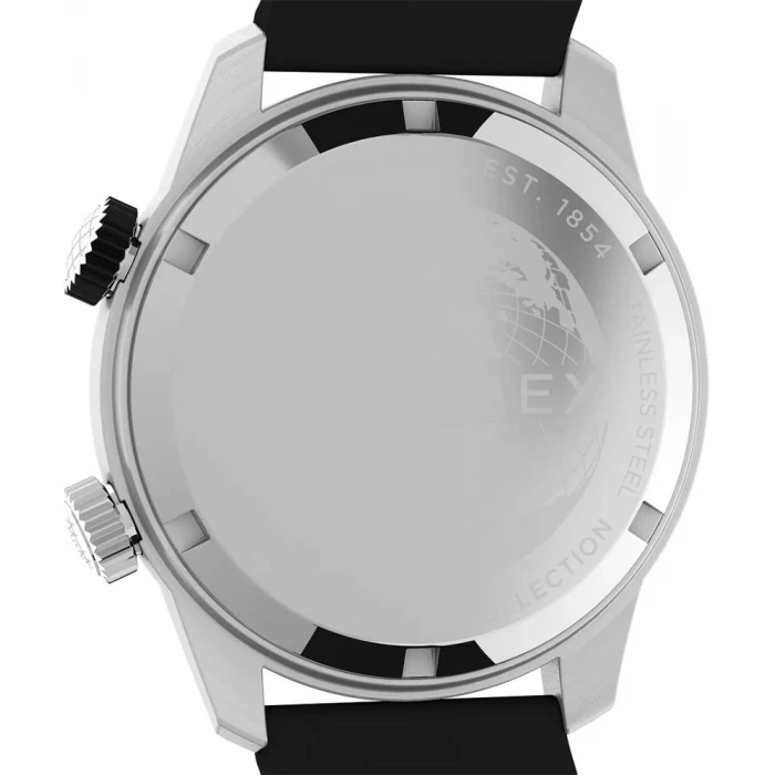Zegarek TIMEX TW2V73400 posiada tradycyjny mechanizm wskazówkowy, dzięki temu odczyt jest prosty i intuicyjny. Indeksy godzinowe oraz wskazówki w srebrnej barwie kontrastują na tle ciemnej tarczy co stanowczo poprawia czytelność. Dodatkowo wypełniono je masą luminescencyjną co pozwala na odczyt w ciemności. Całość dopełnia żółta wskazówka sekundnika ozdobiona stylizowaną literą W, co dodatkowo podkreśla wyjątkowy styl zegarka.