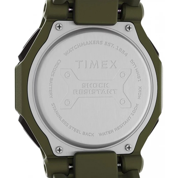 TIMEX TW2V93700 to elektroniczny model, napędzany za pomocą precyzyjnego mechanizmu kwarcowego, zasilanego baterią o średniej żywotności około 2 lat. Koperta o niestandardowym kształcie wykonana została z wysokiej jakości, wytrzymałego tworzywa co gwarantuje odporność na warunki atmosferyczne. Zegarek zestawiono z wygodnym paskiem w zielonej barwie. Ten typ paska to popularna alternatywa dla klasycznej bransolety, stosowana w sportowych modelach. Zapewnia komfort noszenia i łatwość w czyszczeniu. Zapięcie na sprzączkę pozwala na regulację długości obwodu paska i dopasowanie czasomierza do nadgarstka.