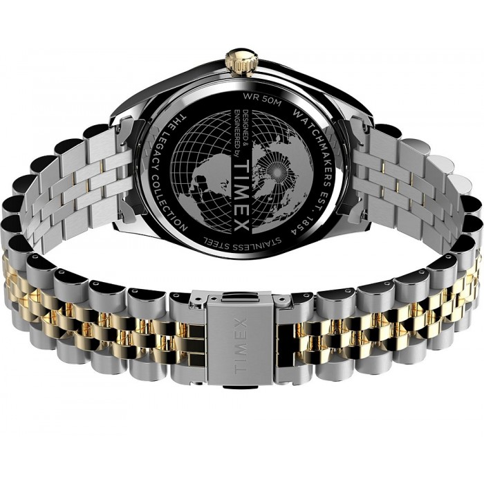 Zegarek amerykańskiej firmy Timex TW2W42800 Classic Day-Date na stalowej, dwutonowej bransolecie.
