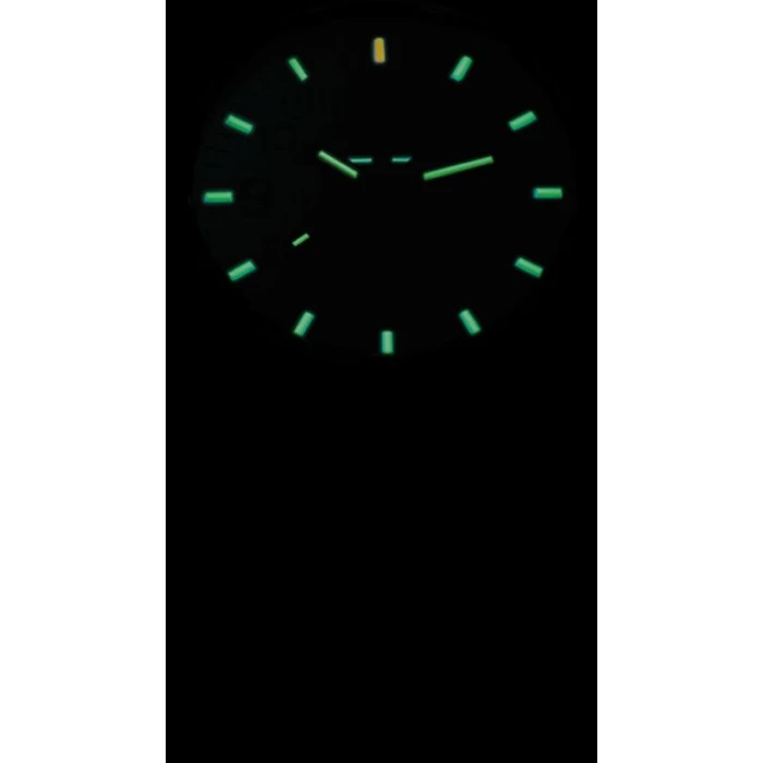 Na tarczy znajduje się praktyczny datownik wskazujący aktualny dzień miesiąca. Warto podkreślić, iż bezbłędną czytelność zapewniają rureczki z nie przerwalnie świecącym trytem umieszczone na wszystkich trzech wskazówkach, w miejscu indeksów a także podkreślają logo producenta. Dodatkowo wspierane są one warstwą Super-Luminova, którą pokryta jest całą tarcza w zegarku! Po naświetleniu jest doskonale widoczna po zmroku.