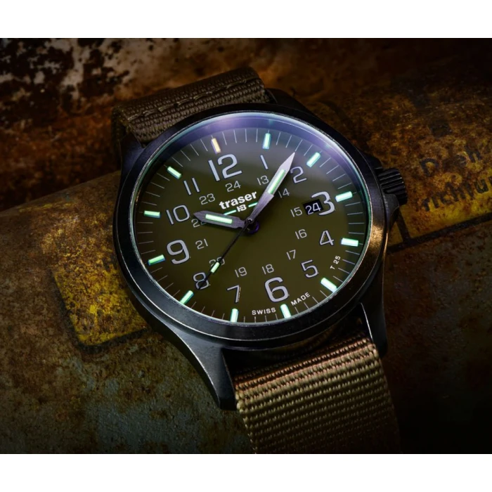 Traser TS-108631 z linii zegarków taktycznych Active Lifestyle szwajcarskiego producenta. Już na wstępie przyciąga uwagę militarnym wyglądem. Wytrzymały czasomierz o doskonałych parametrach i najlepszej czytelności. Czarna koperta wykonana w technologii GunMetal tworzy struktury i barwy stali, z której wytwarzana jest broń palna a technologia trigalight®, czyli samowystarczalne źródła światła daje rurkom z trytem moc świecenia nawet do 25 lat!