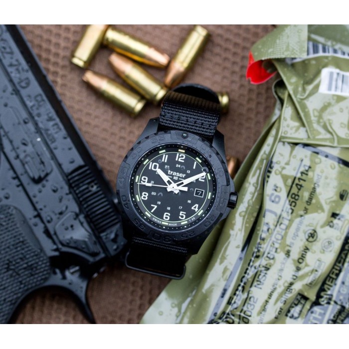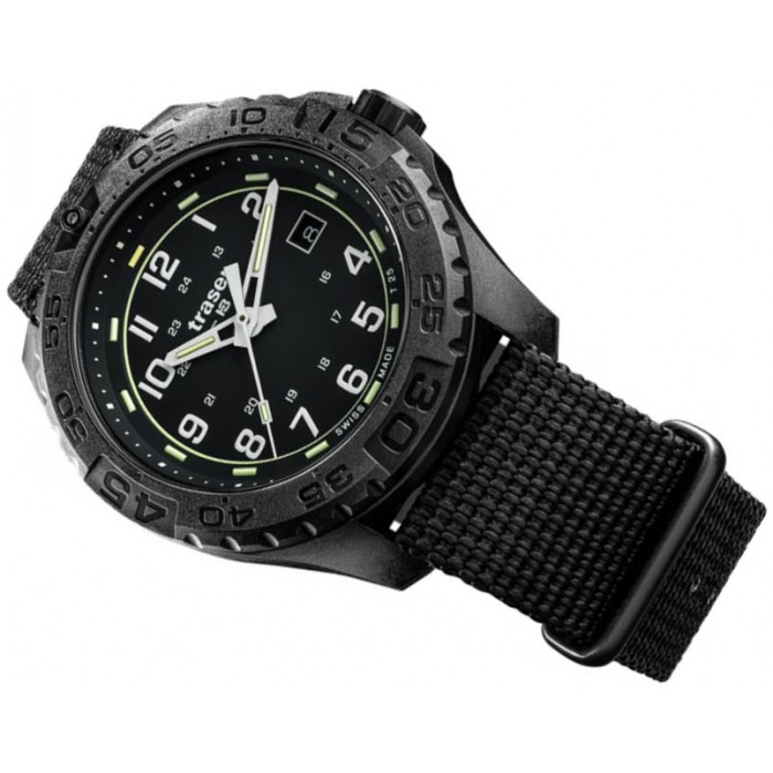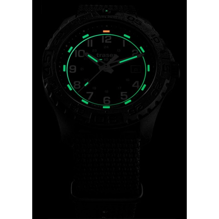 Traser TS-108673 P96 z outdoorowej linii zegarków taktycznych szwajcarskiego producenta. Niezwykły czasomierz w czarnej kolorystyce zachwyca precyzją wykonania i dbałością o detale. Czarna tarcza, koperta i pasek sprawiają że zegarek nabiera drapieżnego charakteru a technologia trigalight®, czyli samowystarczalne źródła światła daje rurkom z promieniującym trytem moc świecenia nawet do 25 lat! Idealny sprzęt dla nocnego łowcy.