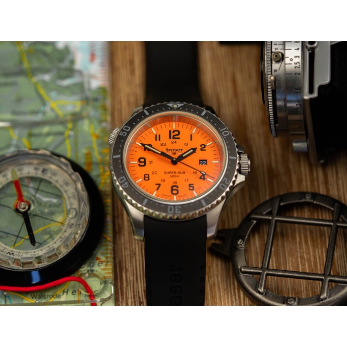 P67 SuperSub DiverAut Black RS Orange - LATARKA UV TRASER - GRATIS! - DODATKOWY PASEK TRASER GRATIS!